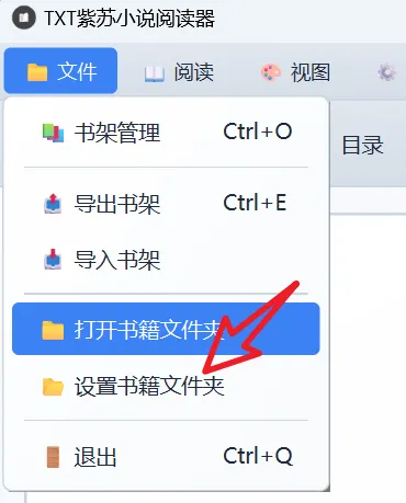 这款软件目前只支持阅读 txt 格式的小说,不过没办法直接把文件拖进软件打开。想要加载小说的话,可以点击顶部菜单里的 “文件 – 设置书籍文件夹”,这样软件就能自动读取这个文件夹里所有的小说文件了。
