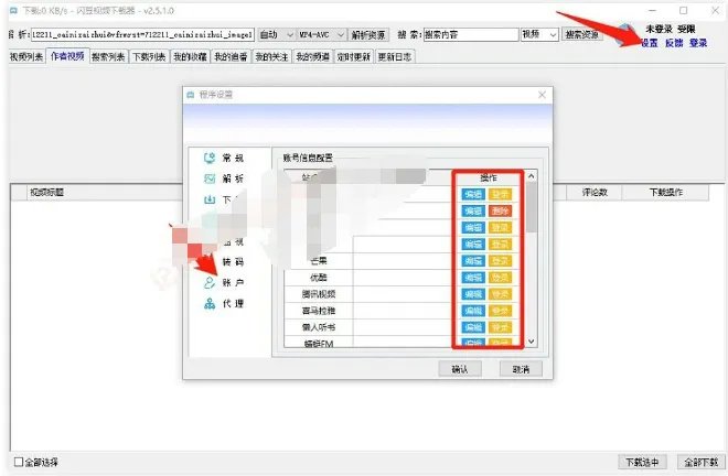 另外,它还支持会员视频下载(需要有会员账号)点击设置—账户—登录对应平台的账号。
