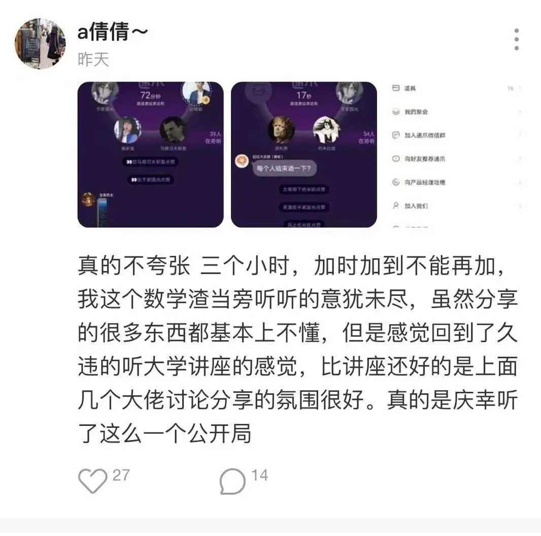 是的你没看错无论是K歌、pia戏、闲聊,还是讨论哲学、科学、文学,或者你只想找几个聊得来的人闲聊,又或者你想找一个安静但有人气儿的地方读书写字,无声陪伴。