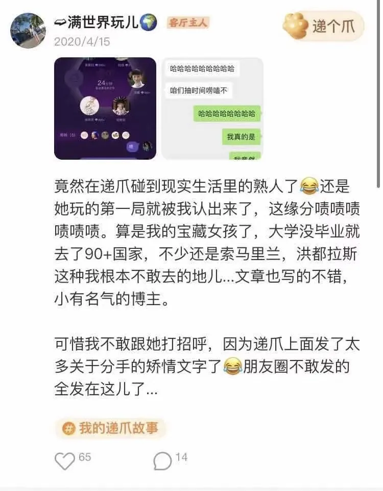 “玩递爪之前,我的社交圈子里根本不可能交到这些‘神仙朋友’,是递爪把他们带到了我的世界里。”