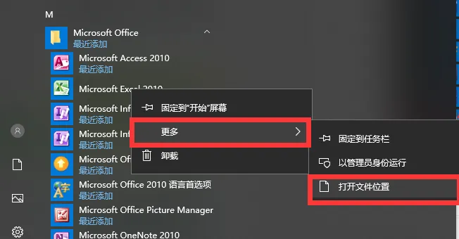 【点击Word–鼠标右击–点击更多–在点击打开文件位置】