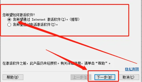 【客服说可以了,你点击上一步,点击【我希望通过Internet激活软件】