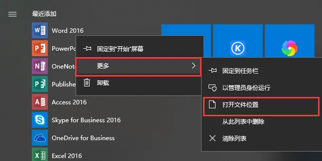 【点击Word–鼠标右击–点击更多–在点击打开文件位置】