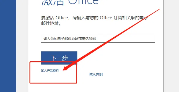 【打开Word之后,弹出一个框,你点击输入产品密钥,没有产品密钥的可以找客服获取】