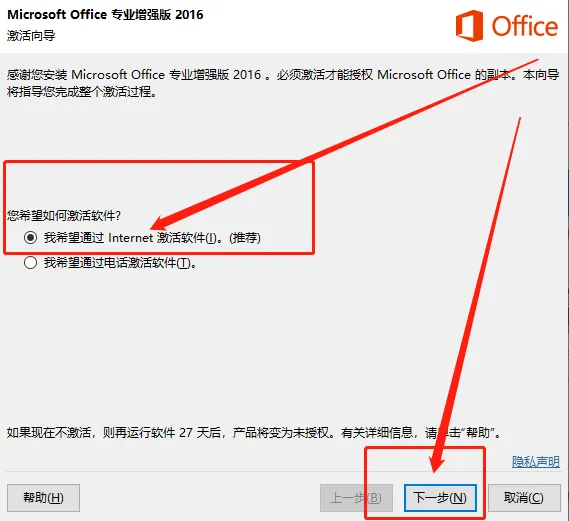 【客服说可以了,你点击上一步,点击【我希望通过Internet激活软件】
