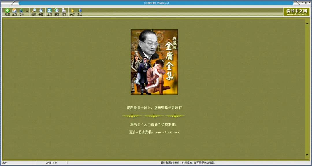 没错,该软件就是这么直接,名字就叫《金庸全集》。搜集了金庸先生的全套小说,免费阅读,没有广告、没有垃圾信息。