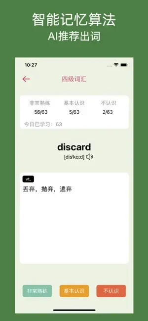介绍:一款四级英语词汇学习工具应用,覆盖四级大纲词汇,AI 智能推荐出词,自动记录记忆情况并定制学习计划。支持桌面小组件,每天一词开机可见,无广告干扰,帮你轻松攻克四级单词难关。 ![]() ![]() ![]() 长按二维码 识别下载 |
