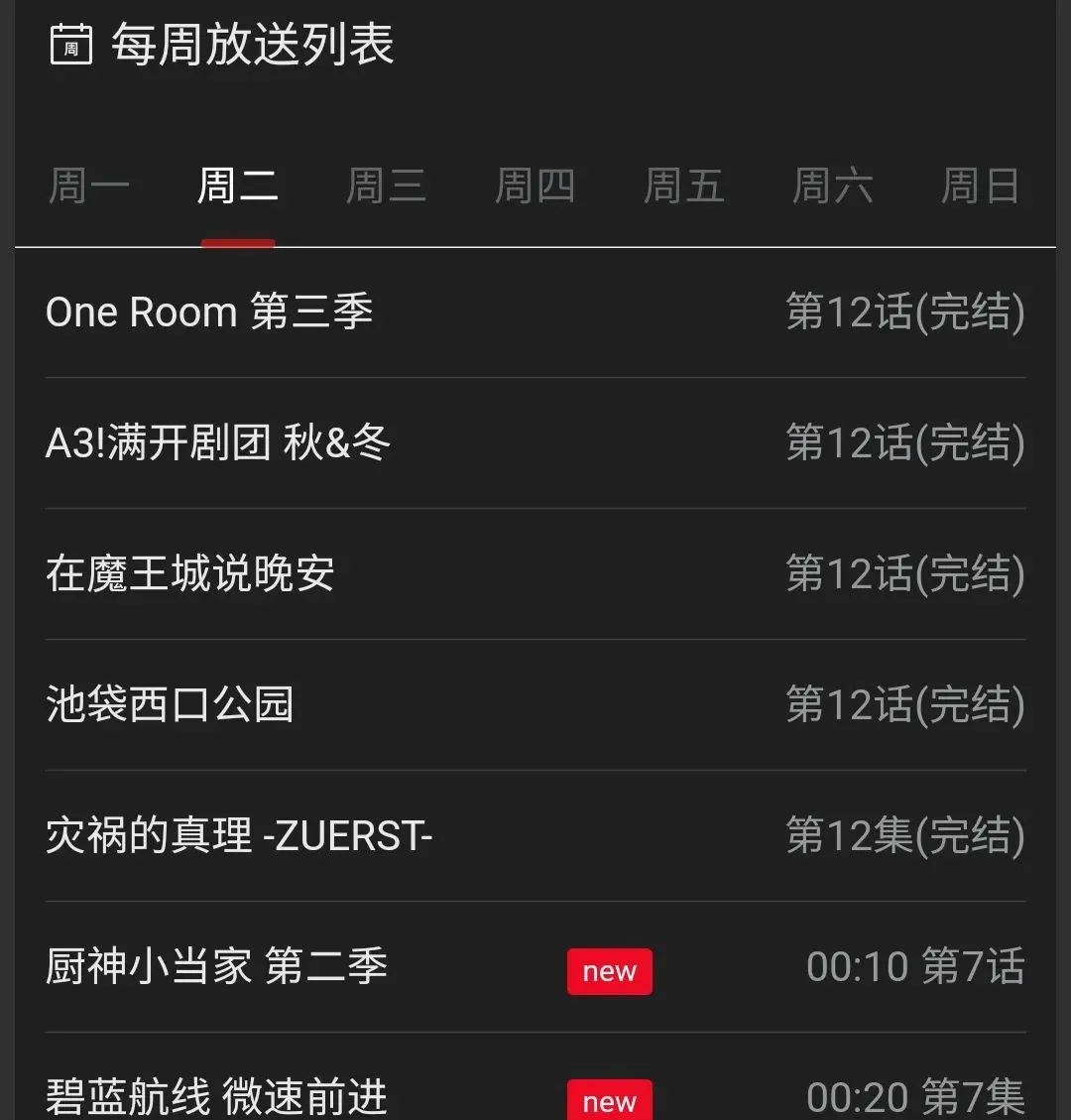 age动漫已推出移动端app一段时间,首页提供了全网动漫的更新时间表,只是这个追番列表就已经看出这是一个专业的追番站点。