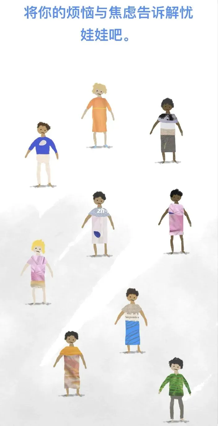 当有什麽事情发生时,试着跟解忧娃娃倾诉,让他成为理解你的美好存在。画风非常可爱,一个娃娃代表一个烦恼,拥有不同的肤色/服装/风格。