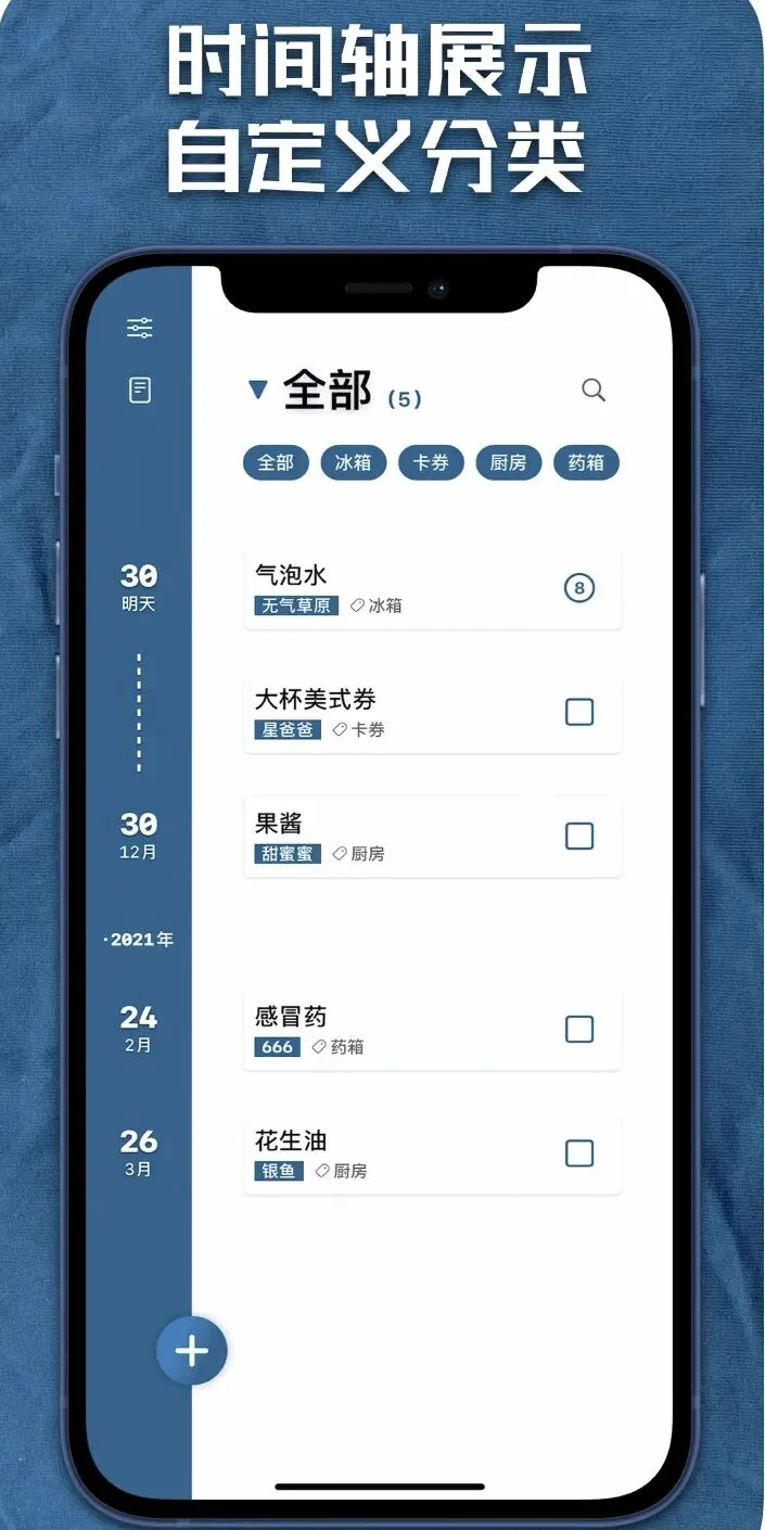 任何你能想象到的有时间截止的事物,都可以记录于此,帮你整理容易忘记的过期物品。