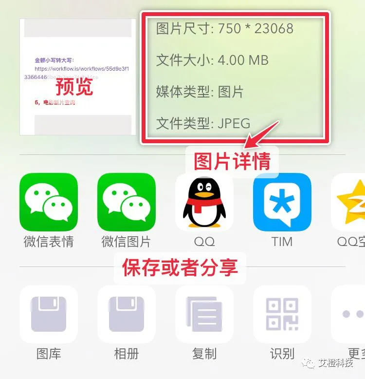 长图截图后可以预览,查看尺寸及大小,保存或者分享。