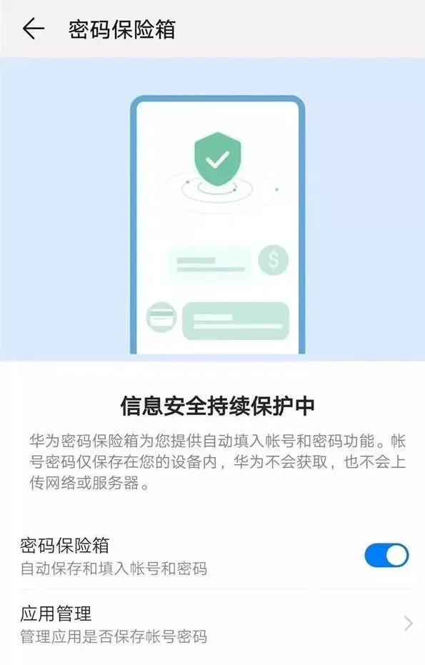 就拿我们比较常见的安卓手机品牌来说,华为有EMUI的【密码保险箱】,小米有MIUI的【智能密码管理】,OPPO 有ColorOS的【密码本】,比如华为: