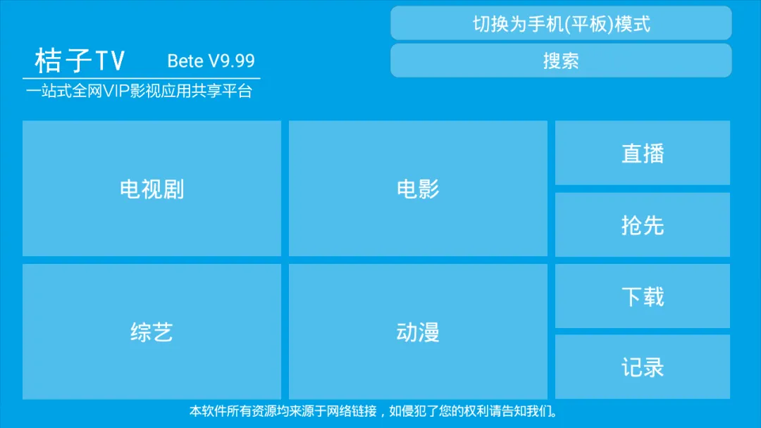 桔子TV和之前推荐的的飞翔TV和极光TV是同个壳的,里面的资源来源没对比,不知道差别多大,大家自行测试。同样具有直播和点播,小巧反应快速,非常不错。有一点需要注意,就是和飞翔或极光不能共存。