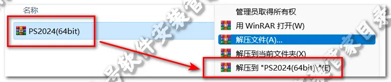 1.鼠标右键解压到“PS2024(64bit)”