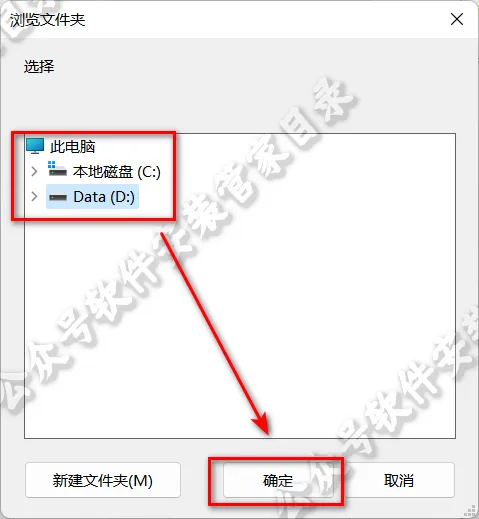 4.选择软件要安装的目录,例如在”D盘”新建文件夹“PS2024″,然后点击”确定”