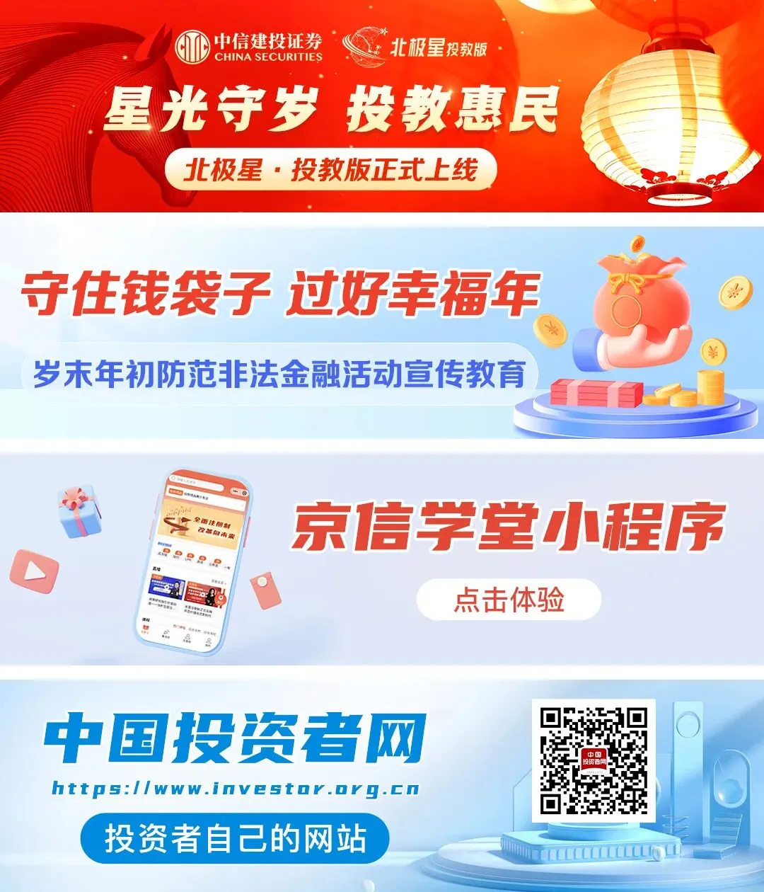 本栏目仅为投资者教育目的而发布,不构成任何投资建议。投资者不应该以该等信息取代其独立判断或仅根据该等信息做出决策。中信建投证券投资者教育基地力求本栏目信息准确可靠,但对这些信息的准确性或完整性不作保证,亦不对因使用该等信息而引发或可能引发的损失承担任何责任。