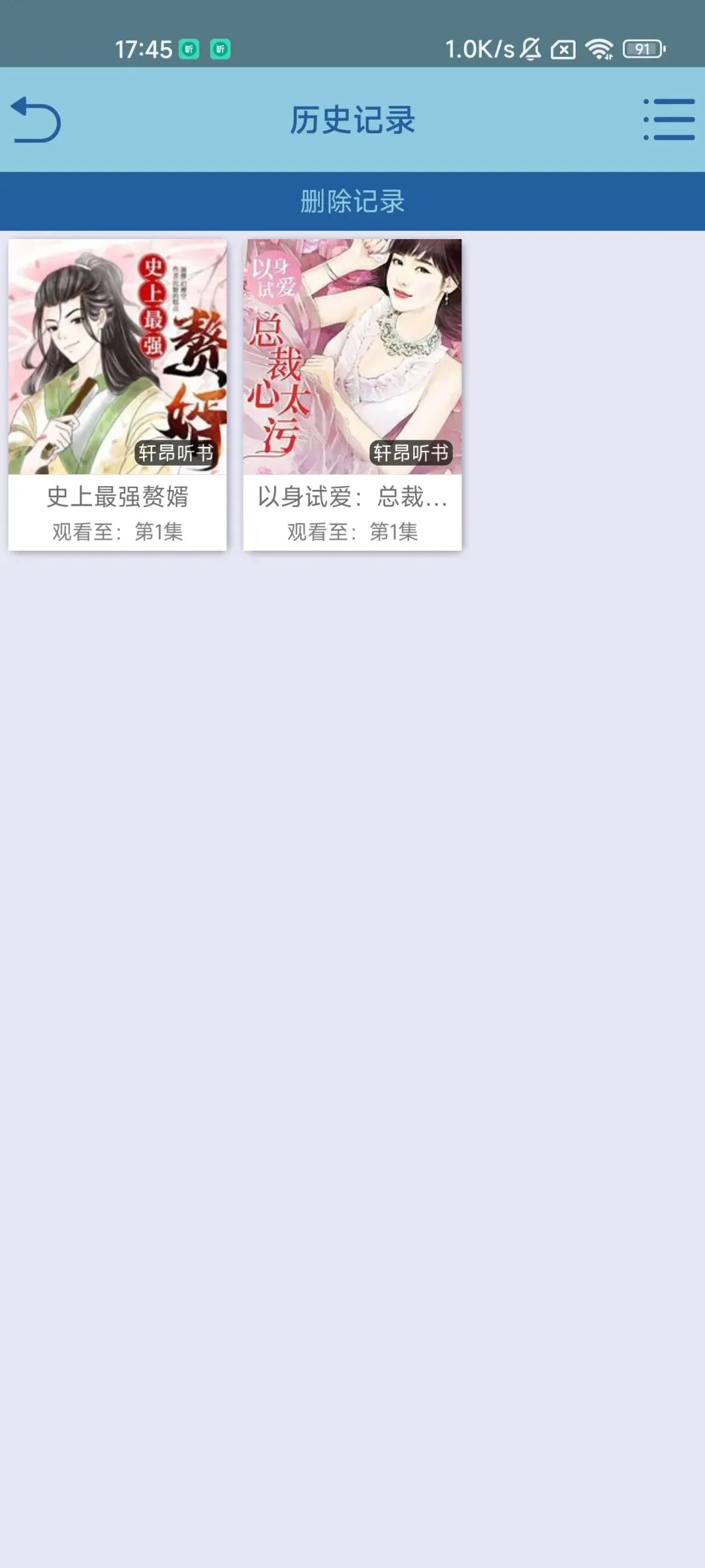 在首页的左上角能查看历史记录,哪一部小说,播放到第几集都有显示。