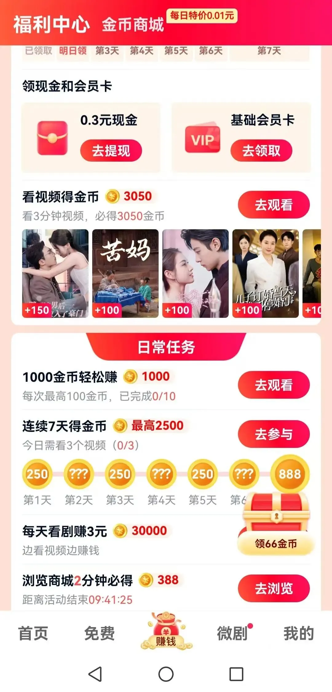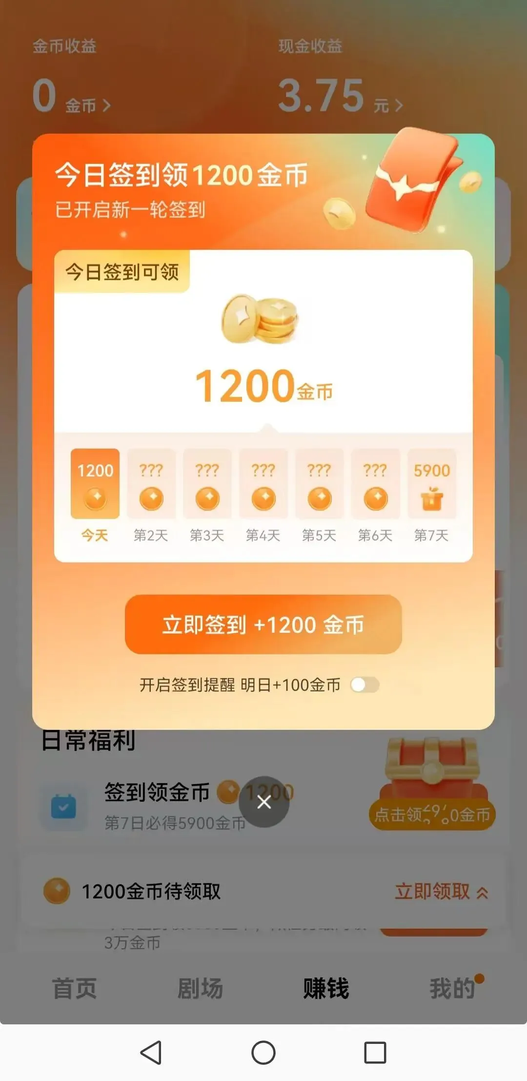 薅秃它的秘诀:弹窗福利一个都别漏!每天去“赚钱”页面签个到、点一点。金币攒着换会员,以后看剧不花钱!