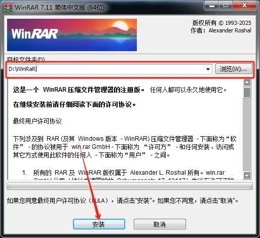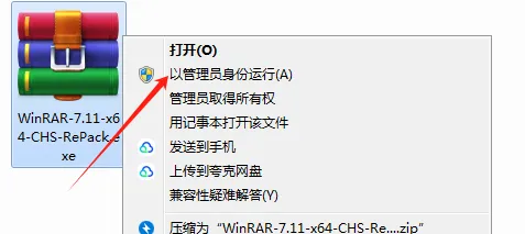 第3步、以管理员身份运行WinRAR-7.11-x64-CHS-RePack.exe