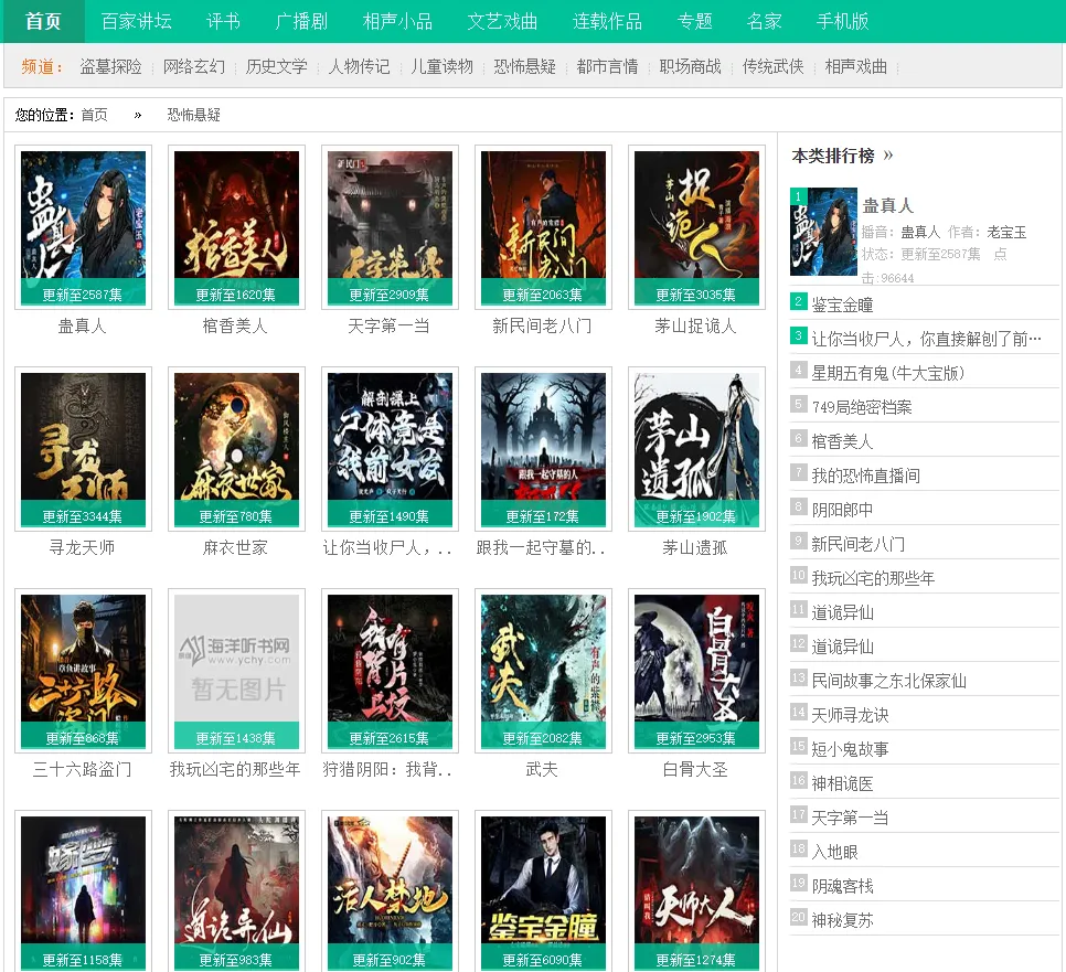 主要是小说,长篇评书、恐怖灵异、都市言情、最近更新等等。