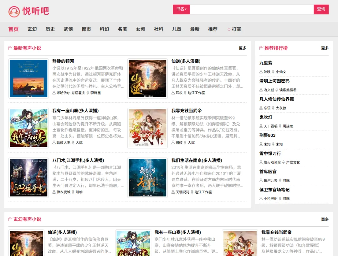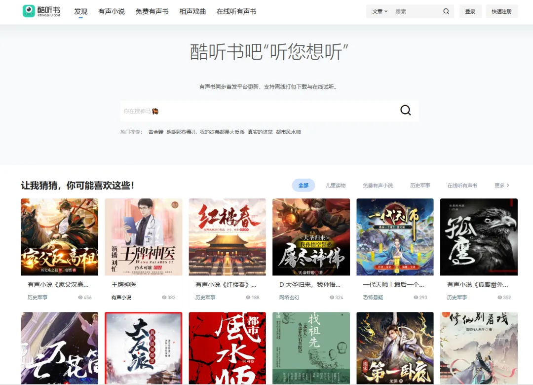 也是一个免费收听有声小说的网站。玄幻、历史、武侠、都市、名著···。