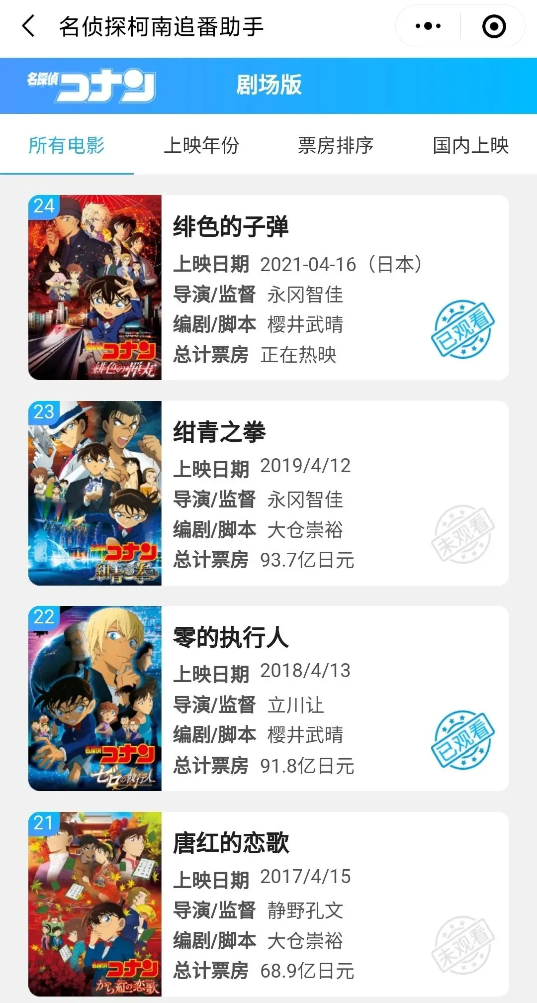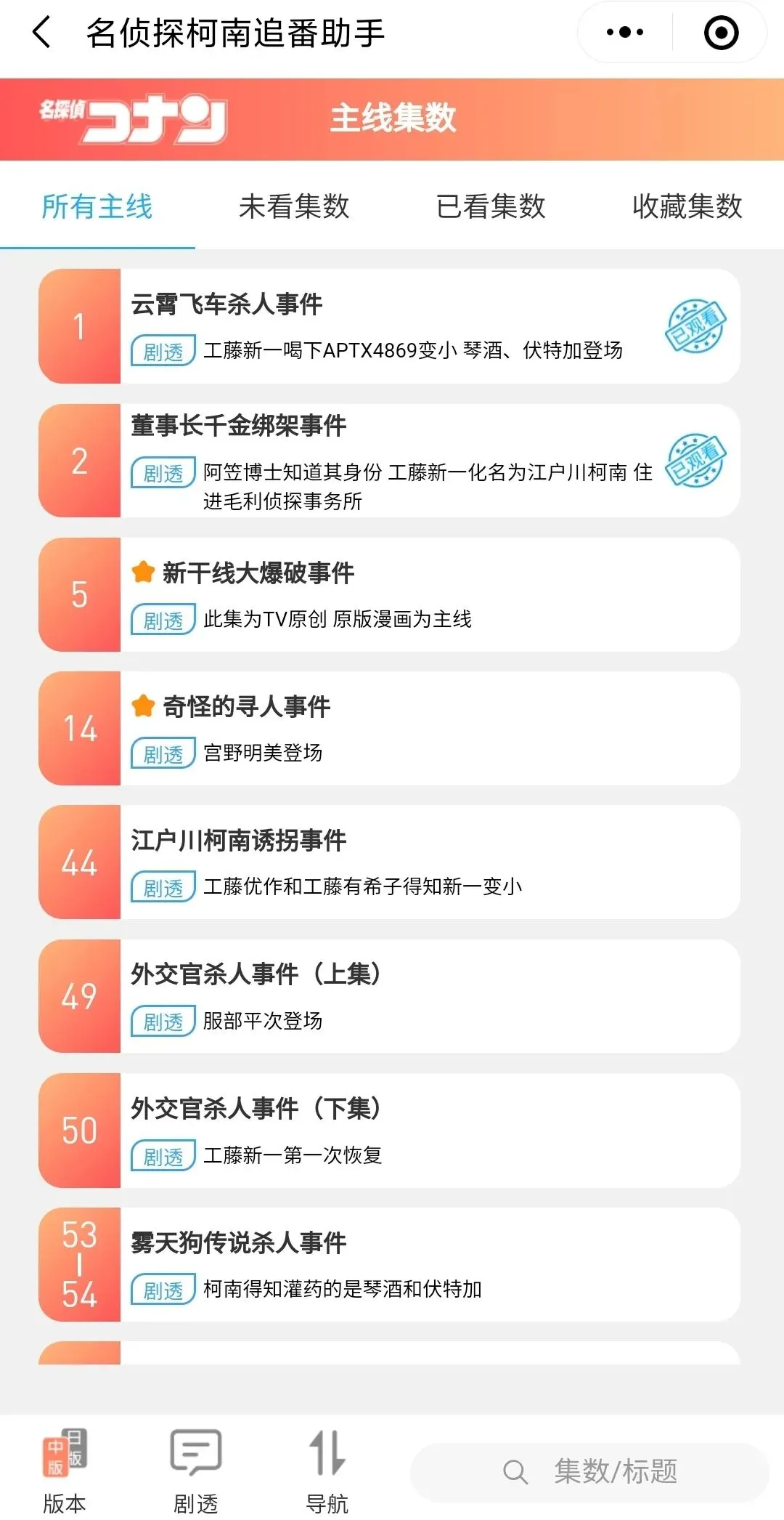 「名侦探柯南追番助手」小程序