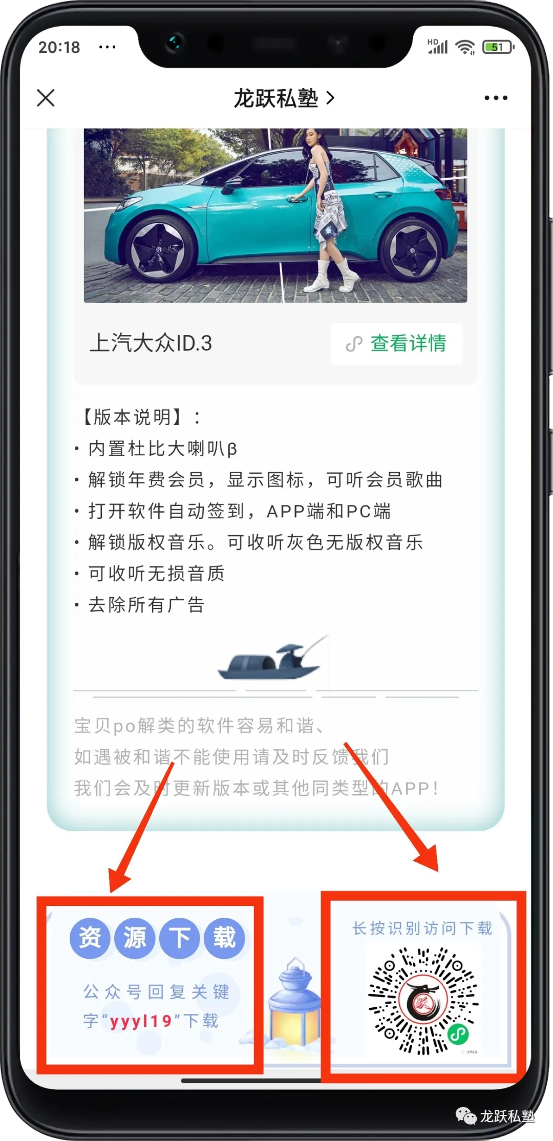四、 文章拉倒最底部可以看到资源下载【关键词】、每一款软件的关键词都不一样、只有回复正确的关键词才可以获取软件下载地址。或者长按识别右侧的小程序二维码访问下载。(大家在浏览文章时文中以及底部的小卡片帮忙点一点、打卡不白|嫖。)