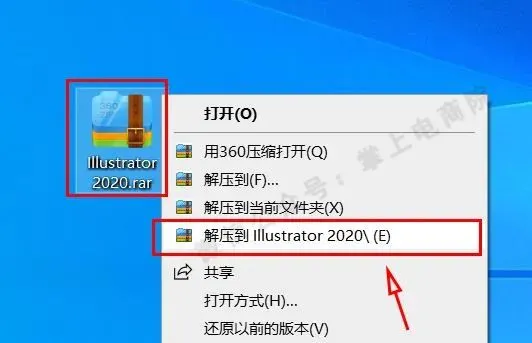 1.鼠标右击【Illustrator 2020】压缩包选择【解压到Illustrator 2020】。