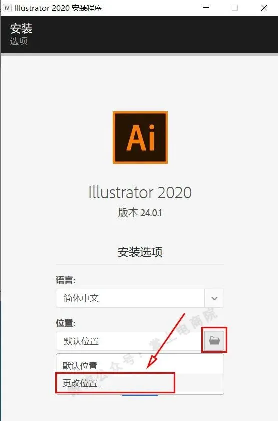 5.点击文件夹图标,然后点击【更改位置】更改安装路径。