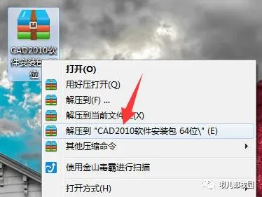 1.鼠标右击软件压缩包,选择“解压到CAD_2010_64bit”