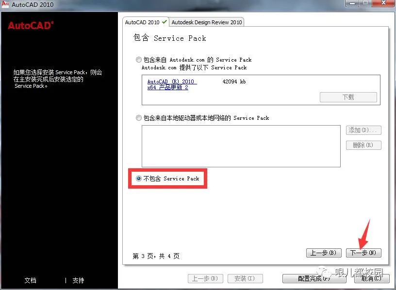 10.选择“不包含Service Pack”,然后点击“下一步”