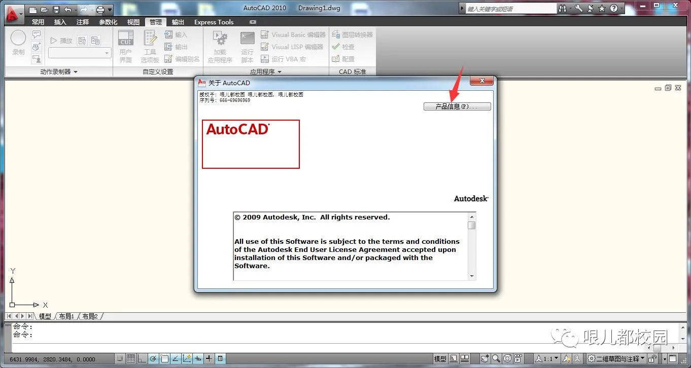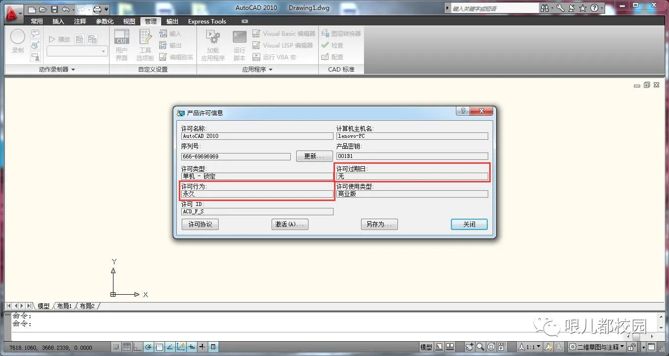 19.点右上角的问号旁边的小三角,点“关于”,然后点“产品信息”,里面有“许可过期日”和“许可行为”。过期日显示“无”,许可行为显示“永久”就是激活了。如图所示为非激活状态,我们点击“激活”(也有可能直接跳出第20步)
