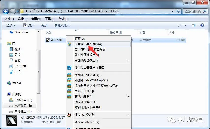 22.打开软件包里面的“注册机”文件夹,鼠标右击xf-a2010,选择“以管理员身份运行”