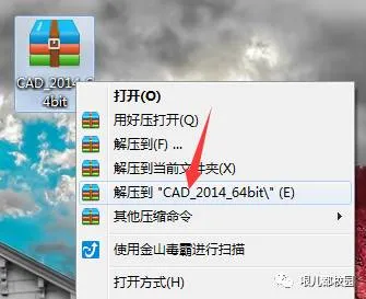 1.鼠标右击软件压缩包,选择“解压到CAD_2014_64bit”