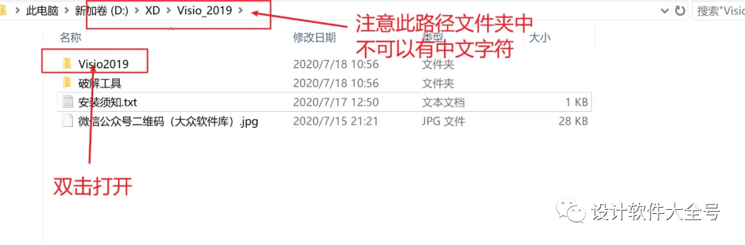 1.从百度云链接中下载后解压得到下图,首先我们找到Visio2021文件夹),然后双击打开,具体操作如下图所示: