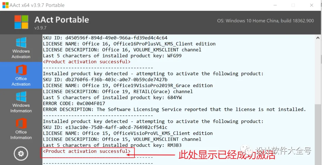 12.然后界面中学生如下图所示(product….)则表示激活成功,如果没有成功则重复上面的操作,具体操作如下图所示: