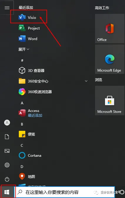 13.然后回到桌面点击开始找到Visio软件-打开具体操作如下图所示: