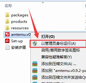 12.选择amtemu.v0.9.2-painter鼠标右键以管理员的身份运行。如果你打开文件夹找不到这个程序,你就关闭杀毒软件然后重新打开安装包。