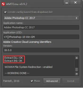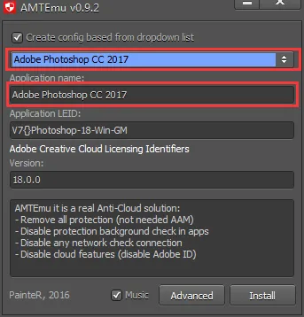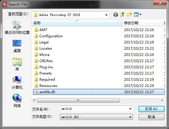 14.点击Install,会跳转到一个文件夹,默认路径:C:\Program Files\Adobe\Adobe Photoshop CC 2018,然后选择amtlib.dll ,双击打开。