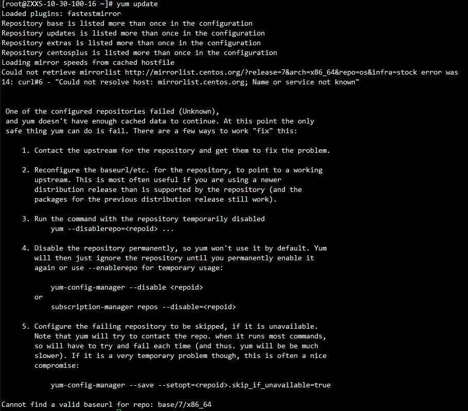 执行 yum update可能会出现如下错误信息