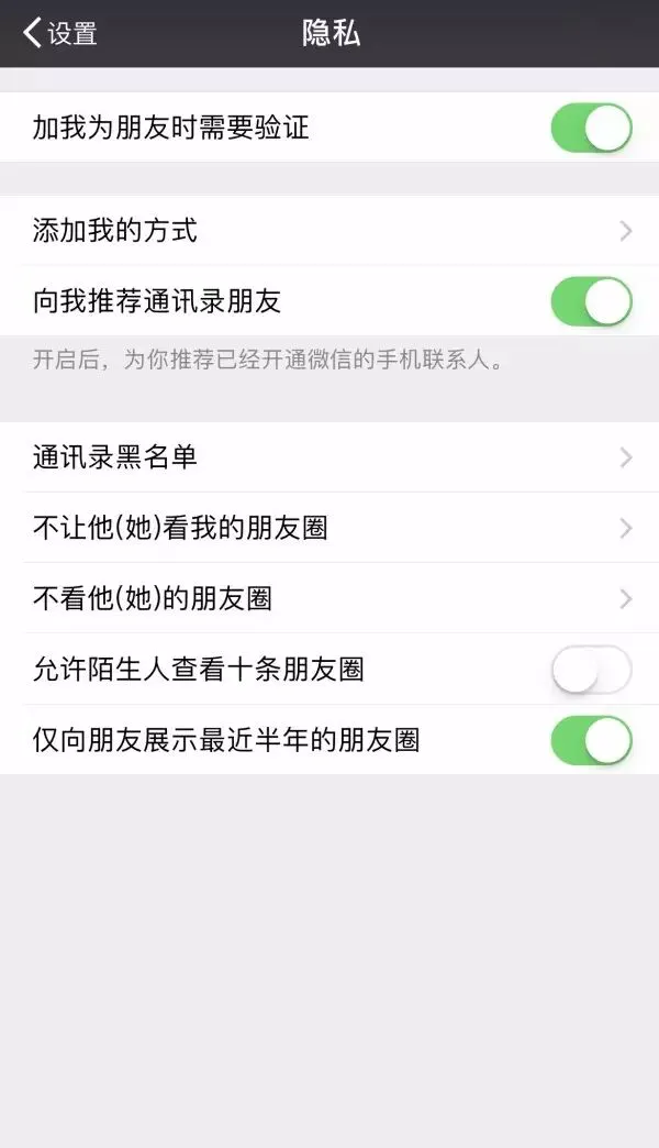方法是:在【设置】里点【隐私】,然后找到最下面的【仅向朋友展示最近半年的朋友圈】选项就可以啦。