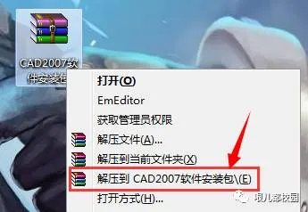1.鼠标右击软件压缩包,选择解压到CAD2007软件安装包
