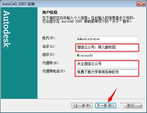 9.名字,代理商和代理商电话随便输入,然后点击下一步