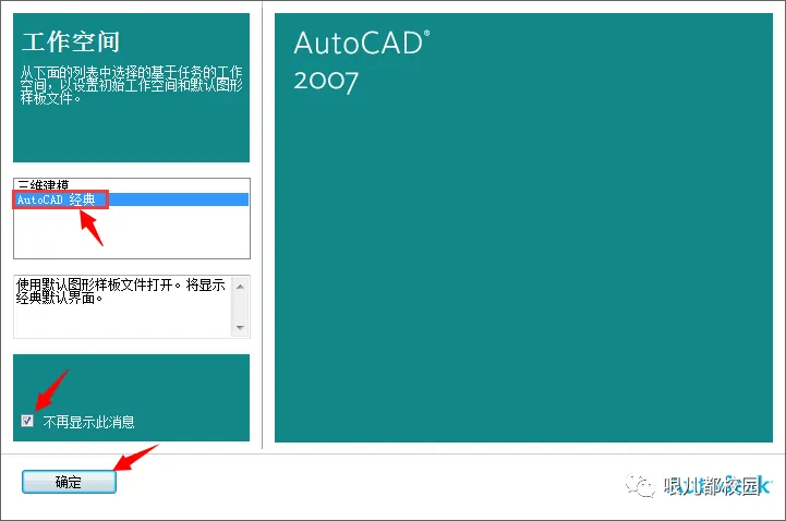 18.打开CAD软件,选择不再显示此消息后再点击运行程序