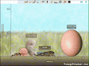 从大到小:……鸡蛋、蝉、8周大的人类胚胎、一美分硬币、蜜蜂、蚂蚁……