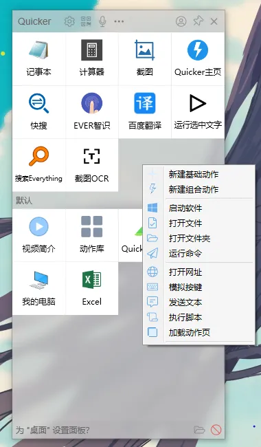 功能介绍:Quicker,您的指尖工具箱,快捷方式“大本营”。你可以在里面放入你的常用操作,例如启动一个软件,或是打开一个网页等等。