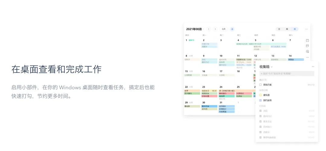 启用小部件,在你的 Windows 桌面随时查看任务,搞定后也能快速打勾,节约更多时间。