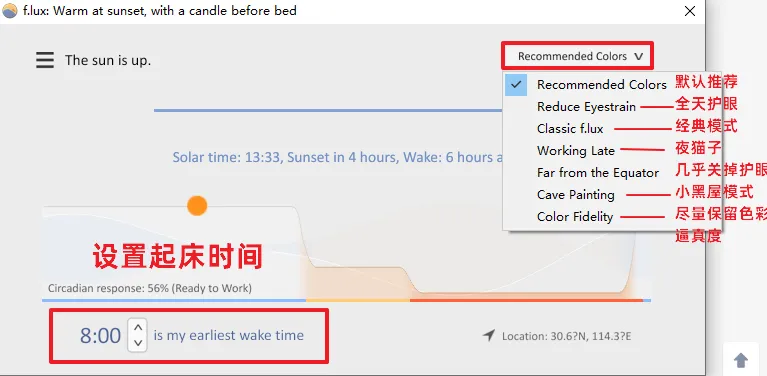 对着电脑一天下来,眼睛肯定也吃不消,建议打开 Reduce Eyestrian 全天护眼模式。