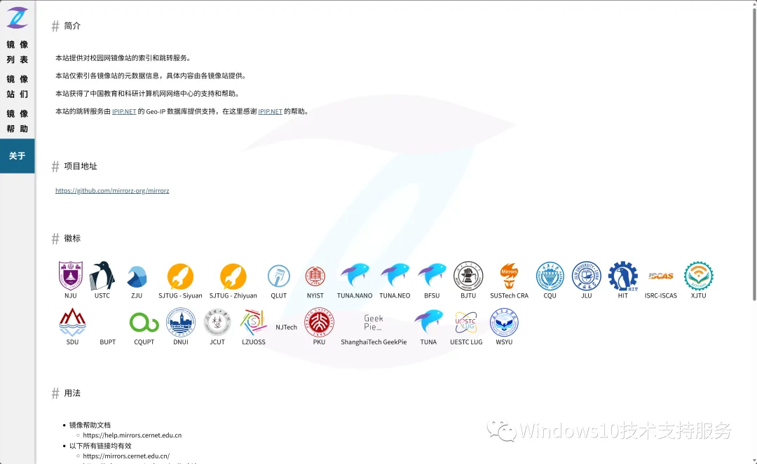 校园网联合镜像站 https://mirrors.cernet.edu.cn/about
