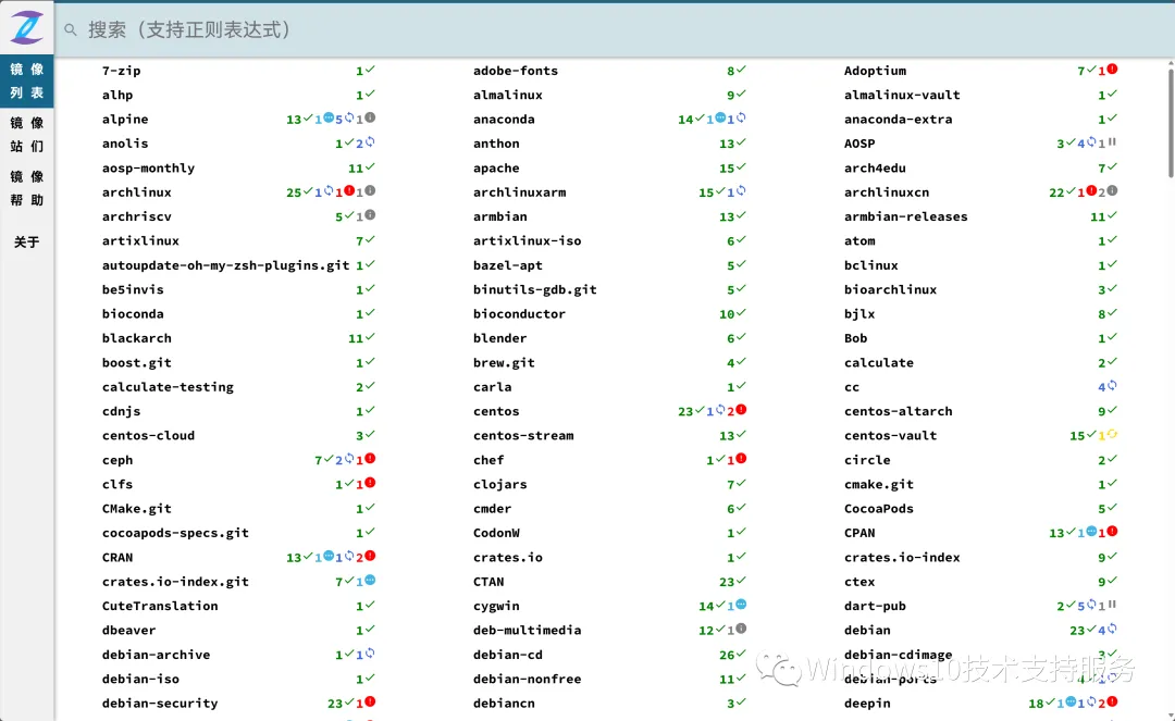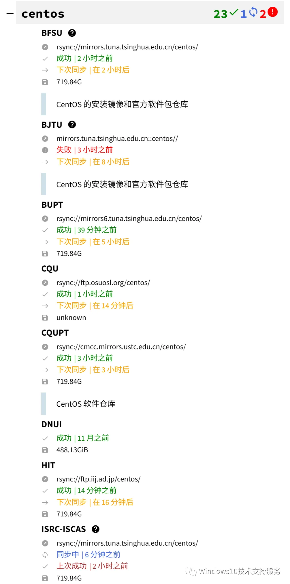 可以看到具体的高校镜像站同步情况。